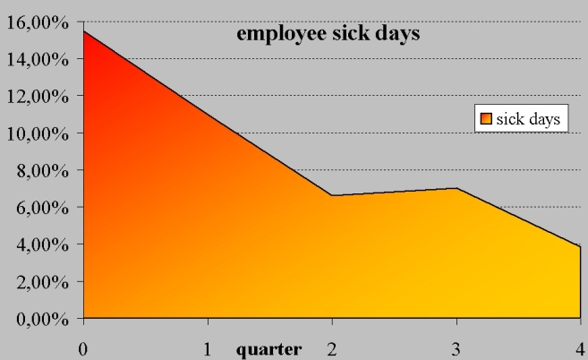 This chart illustrates the reduction in sick time achieved in one year.